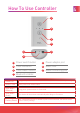 How To Use Controller 1 2 3 4 7 5 6 Power switch button 5 Power adapter port 2 Time indicators 6 Reset hole 3 Timer switch button 7 Mask-connecting port 4 Bluetooth indictor 1 Power On Long press power button for 3 seconds, Bluetoorh indicator will keep blinking Select Time Short press timer switch button Shut down (Manual) Long press power button for 3 seconds Shut down (Auto) The device will shut down automatically after idling for 5 minutes Use a small point object or needle to po