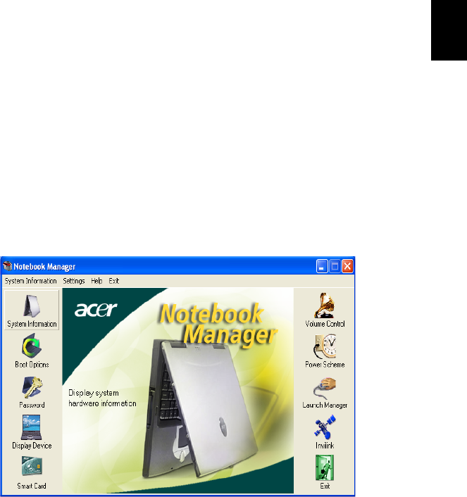 To start the Notebook Manager, press Fn-F2 or follow these steps:
