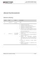 LTE Standard Module Series EC200T Series Hardware Design About the Document Revision History Version Date Author Description 1.0 2019-09-12 Jaye SANG/ Niko WU Initial 1. 2. 3. 4. 5. 6. 7. 1.1 2020-08-10 Jaye SANG/ Owen WEI 8. 9. 10. 11. EC200T_Series_Hardware_Design Added related information of EC200T-AU. Deleted B5 of EC200T-EU. Updated the storage of SMS (Table 2) Updated the pin assignment diagram (Figure 2). Updated the pin description (Table 5).