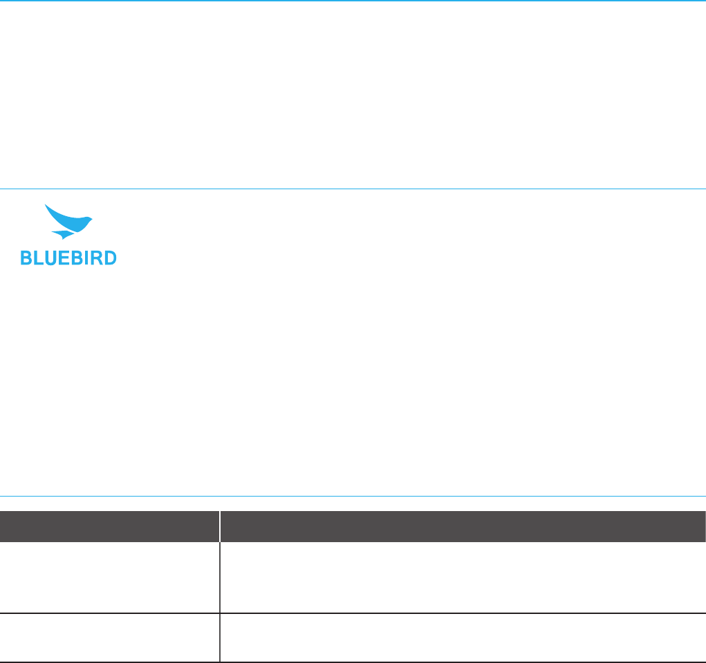 • Bluebird and stylized Bluebird Logo are registered trademarks and symbols of Bluebird Inc.
