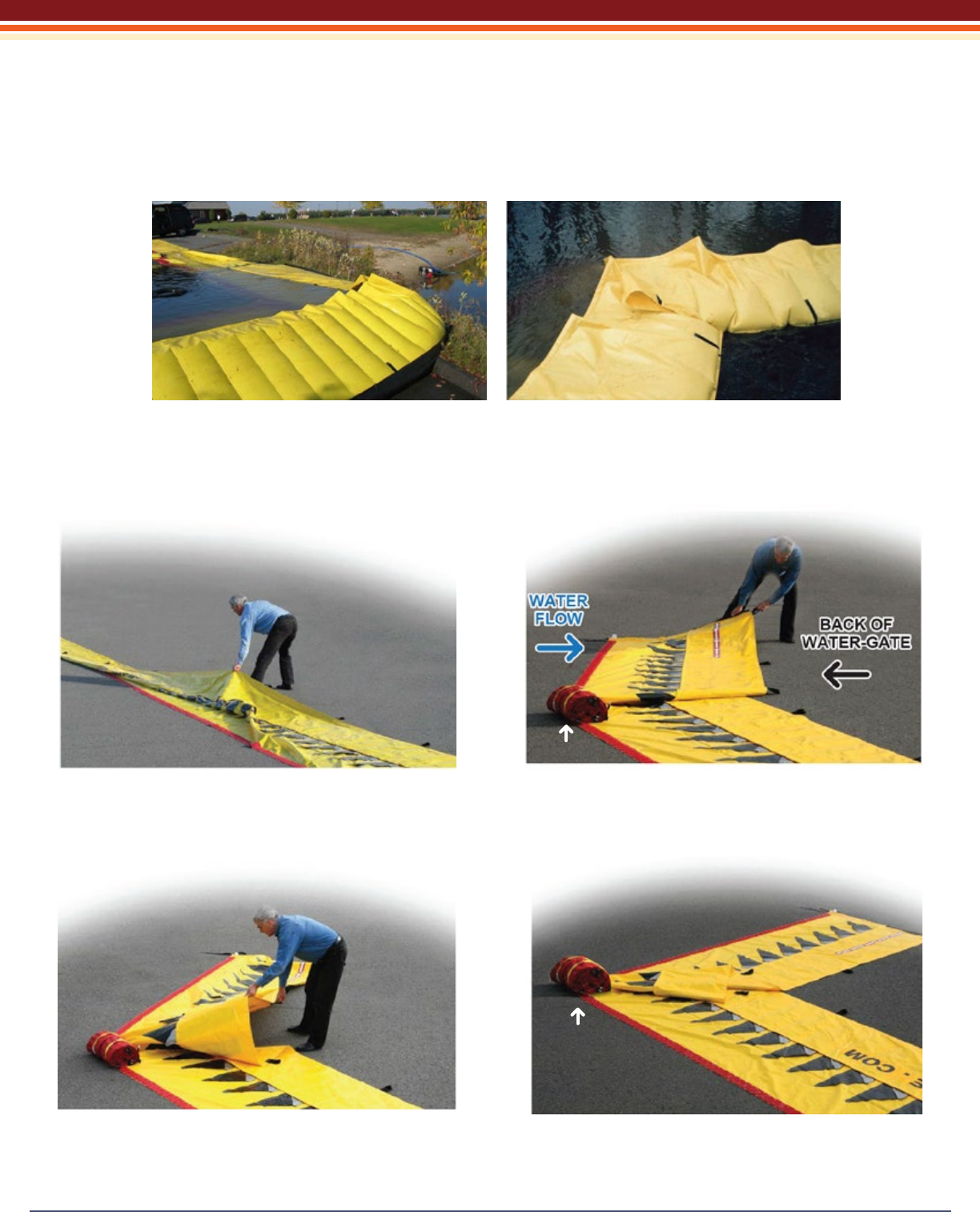 A - Completely unfold the Water-Gate. B - Place weights on the front ap of the