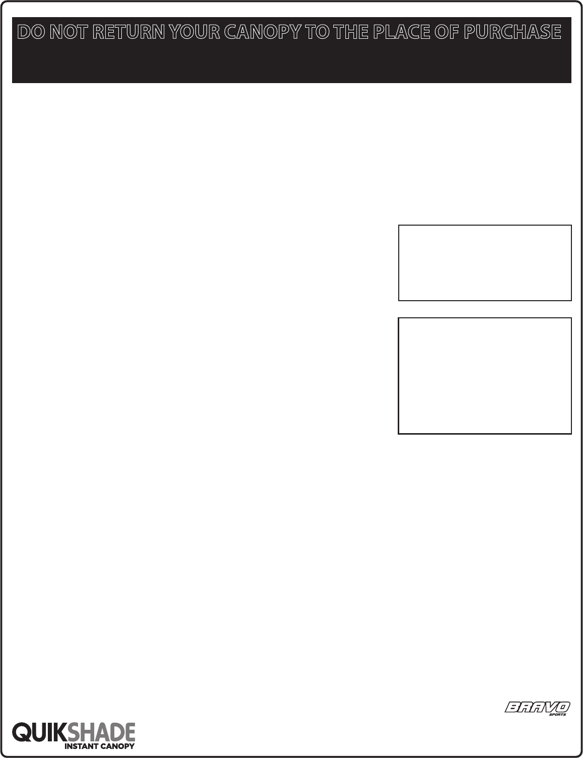 DO NOT RETURN YOUR CANOPY TO THE PLACE OF PURCHASE