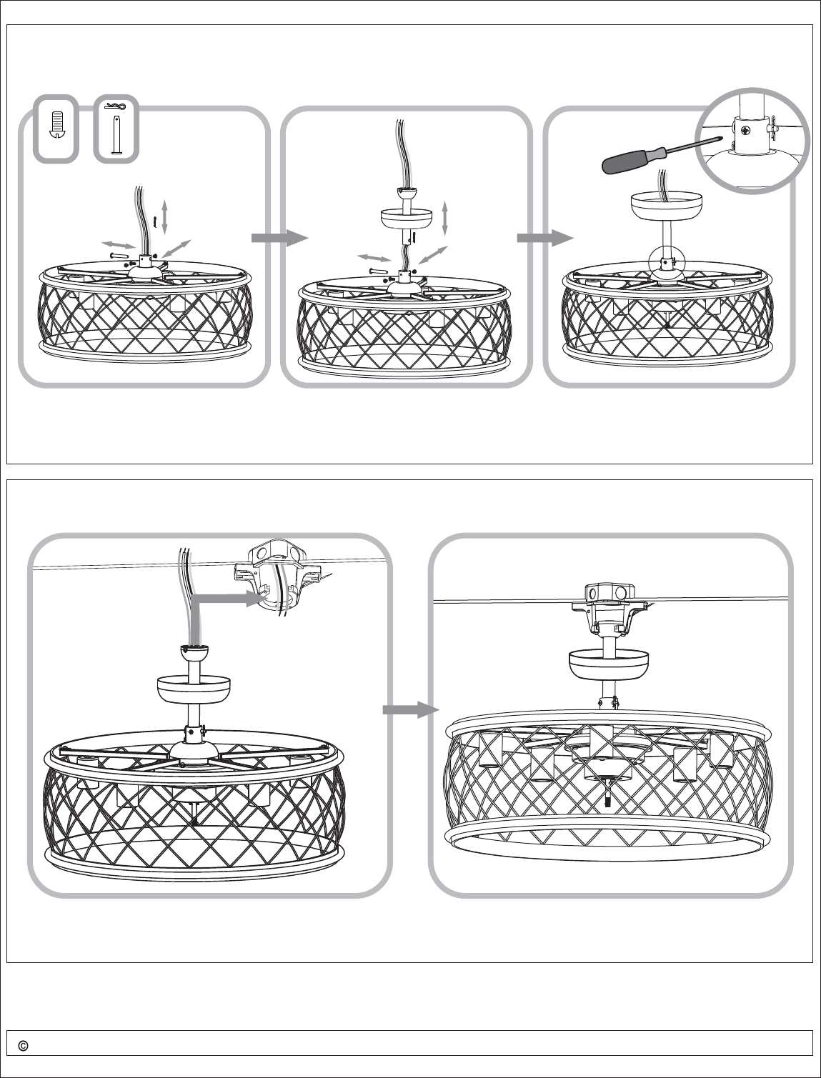 Install Downrod to Fan/Fixture Body Tighten the setscrew with screwdriver.