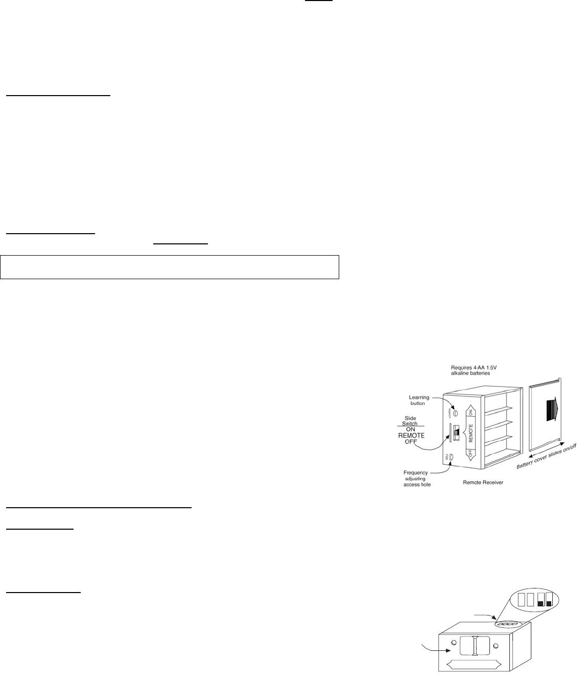 The remote receiver has a 3-position slide switch for selecting the MODE of operation: ON/REMOTE/OFF