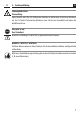 i 4. Zeichenerklärung D Lebensgefahr durch Stromschlag. Dieses Zeichen weist Sie auf Gefahren bei Arbeiten an elektrischen Anschlüssen, Bauteilen etc. hin. Es fordert Sicherheitsmaßnahmen zum Schutz von Gesundheit und Leben der betroffenen Person. STOP Hier geht es um Ihre Sicherheit. Beachten und befolgen Sie bitte alle so gekennzeichneten Hinweise. HINWEIS / WICHTIG / ACHTUNG Auf diese Weise machen wir Sie auf weitere, für die einwandfreie Funktion, wichtige Inhalte aufmerksam.