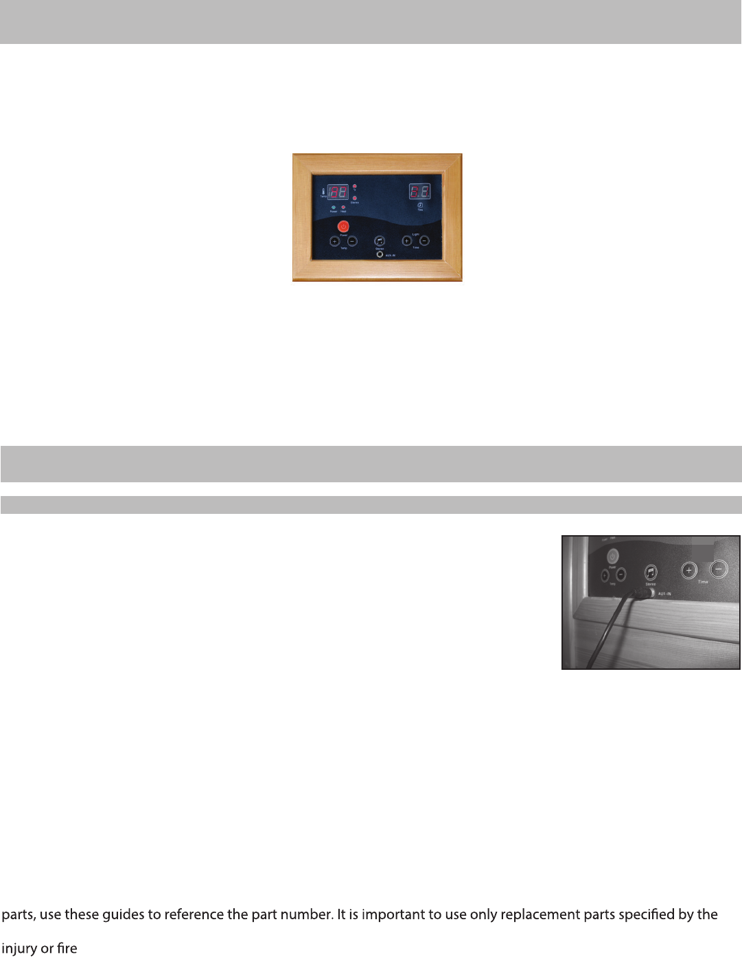 manufacturer. The use of unauthorized substitutes may damage your sauna or cause electrical hazards resulting in