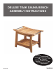 DELUXE TEAK SAUNA BENCH ASSEMBLY INSTRUCTIONS Please Do N ot Hesitate to Contact Our Consumer H otline at 800-759-0 9 77 with Any Qu estions That May Arise During Assembly or Use of This P roduct! Ver.