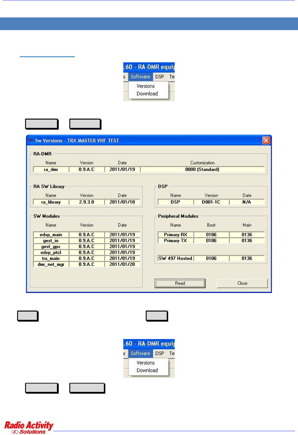 This form shows the current version and the emission date of all the software modules in the Base Station