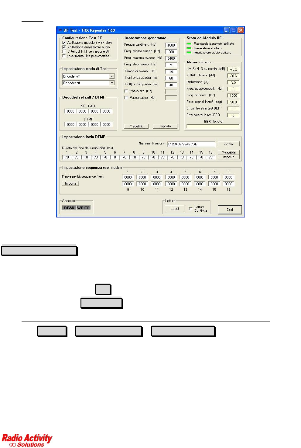 The generator features and analyzer measures are referred to the selected test input, usually TX and RX; if the