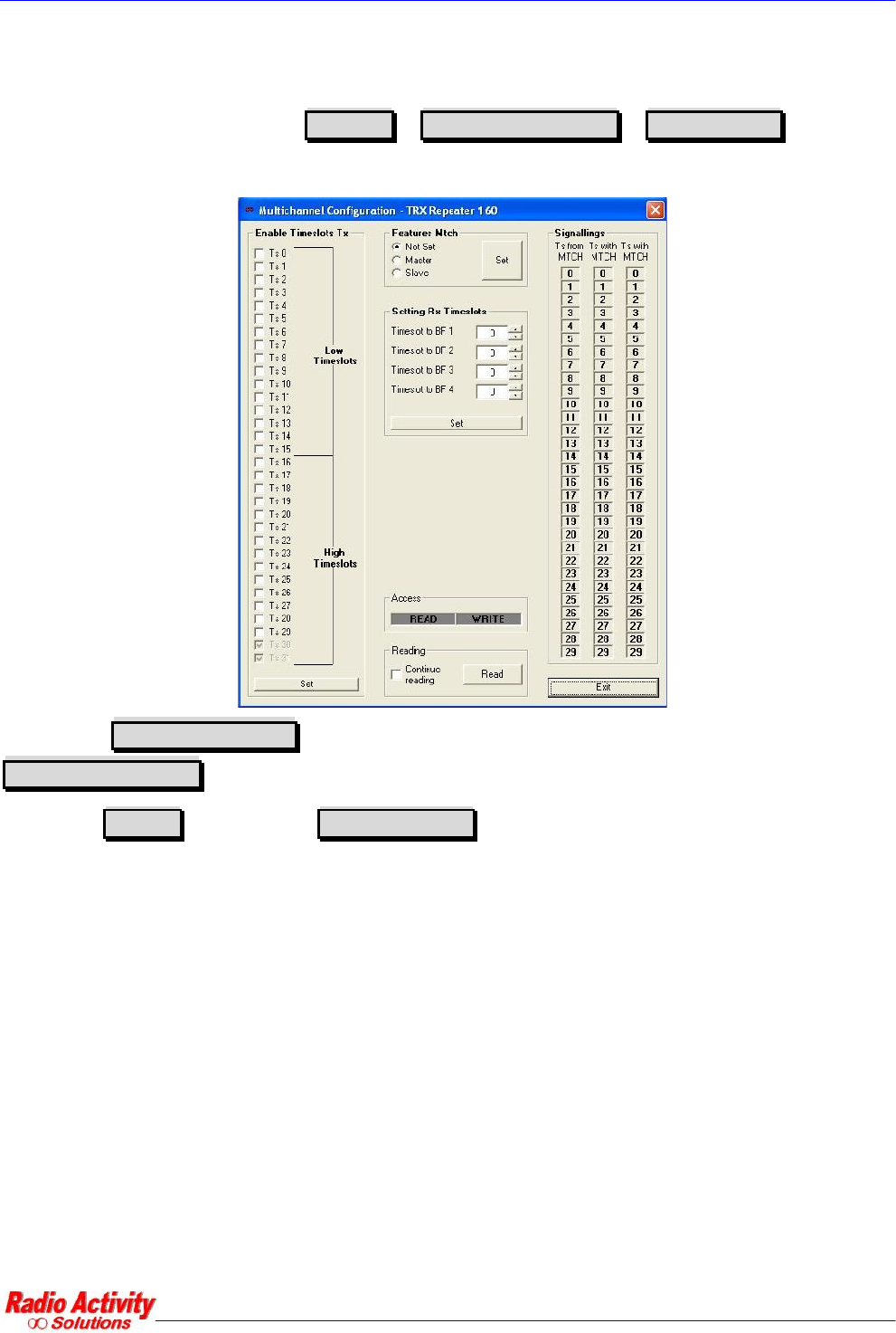 To set the MTCH parameters click on RA-DMR Radio configuration Multichannel .