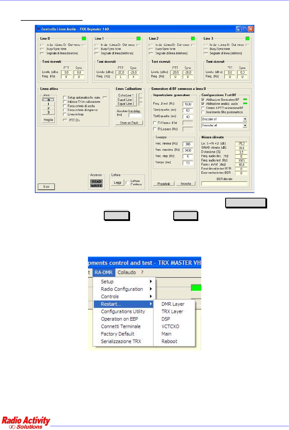 This form allows the user to perform some tests on the line interfaces. In the section Linea attiva you can