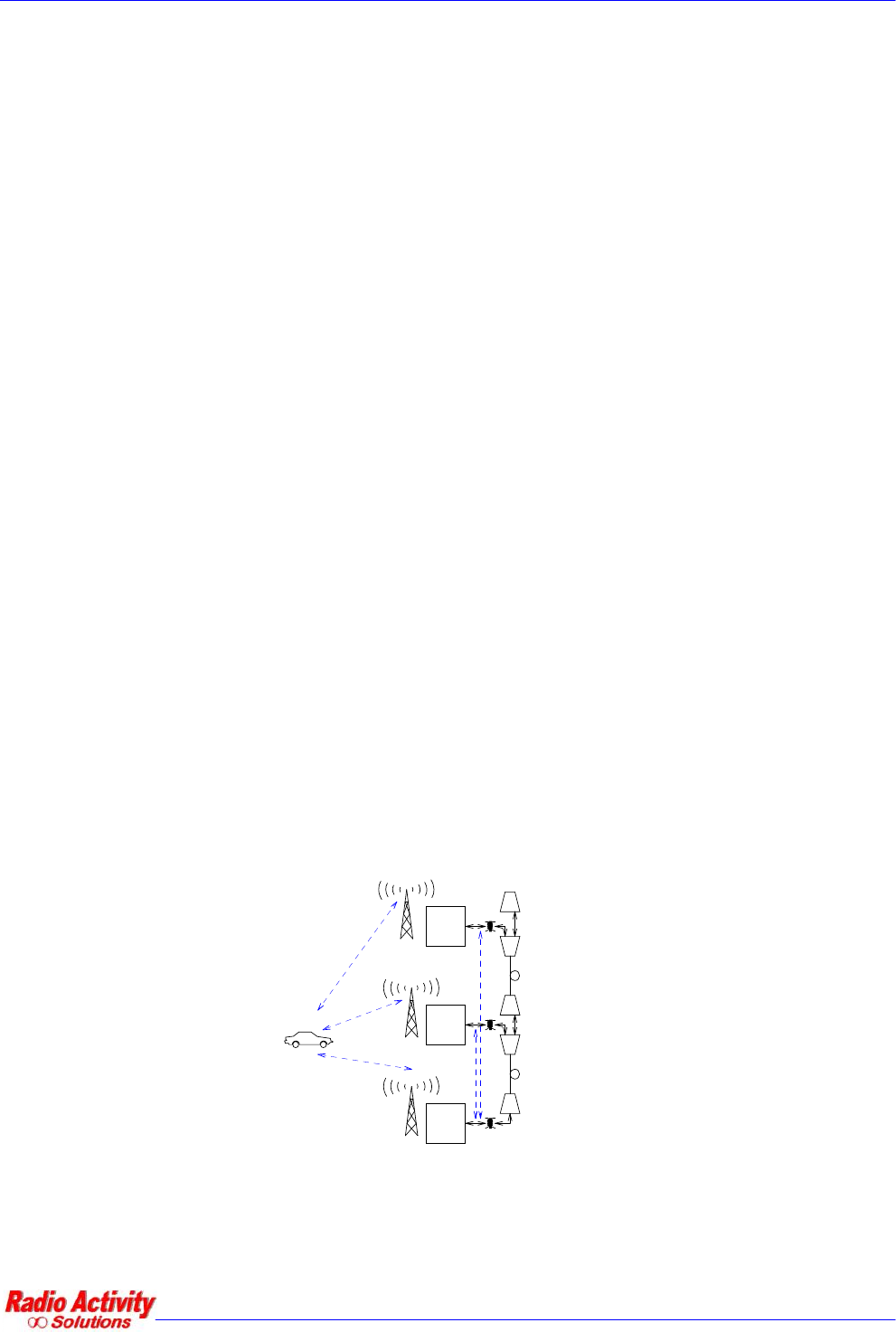 In a simulcast network, unlike a cellular system in which each cell is characterized by a particular frequency, all