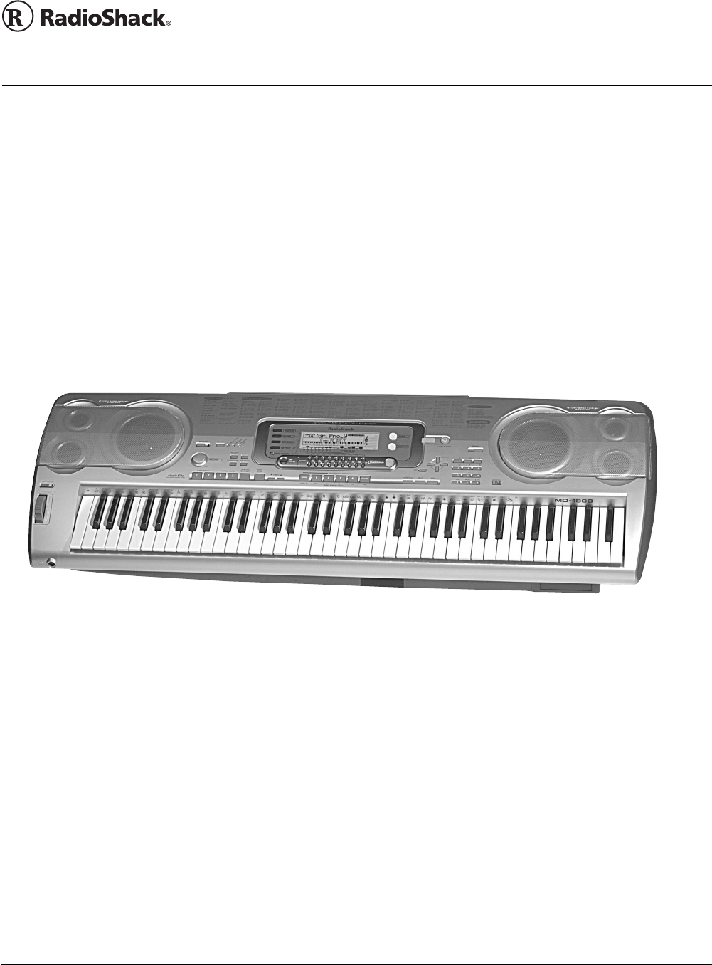 MD-1800 76-Key MIDI Keyboard www.radioshack.comSM OWNER’S MANUAL — Please read before using this equipment. 42-4062 © 2003 RadioShack Corporation. All Rights Reserved. RadioShack and RadioShack.com are trademarks used by RadioShack Corporation.