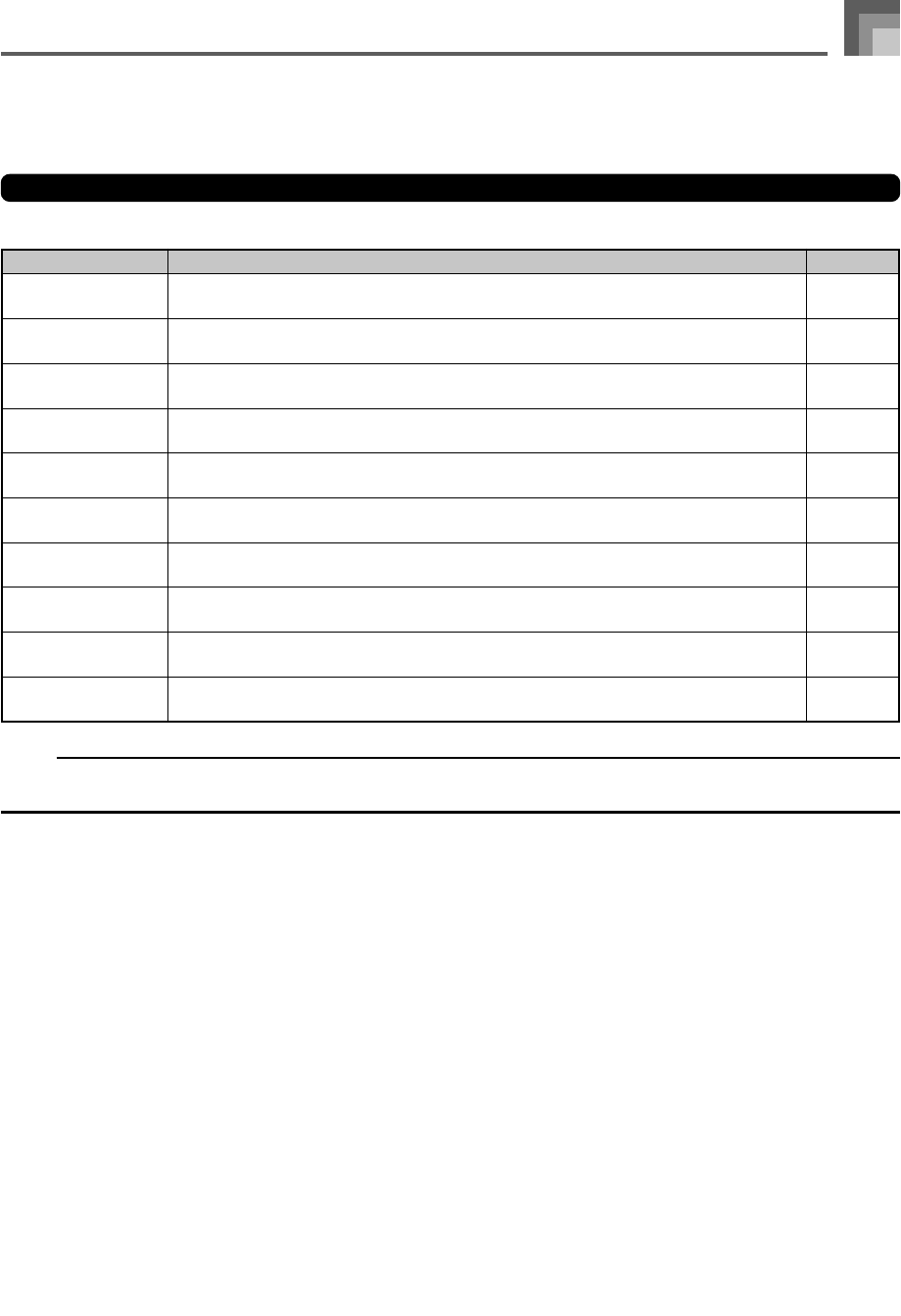 The table below shows the parameters whose settings you can change.