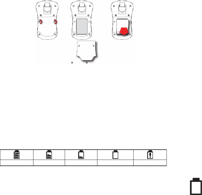 once and flashing once every minute, and the “empty battery” icon blinks on and off once per