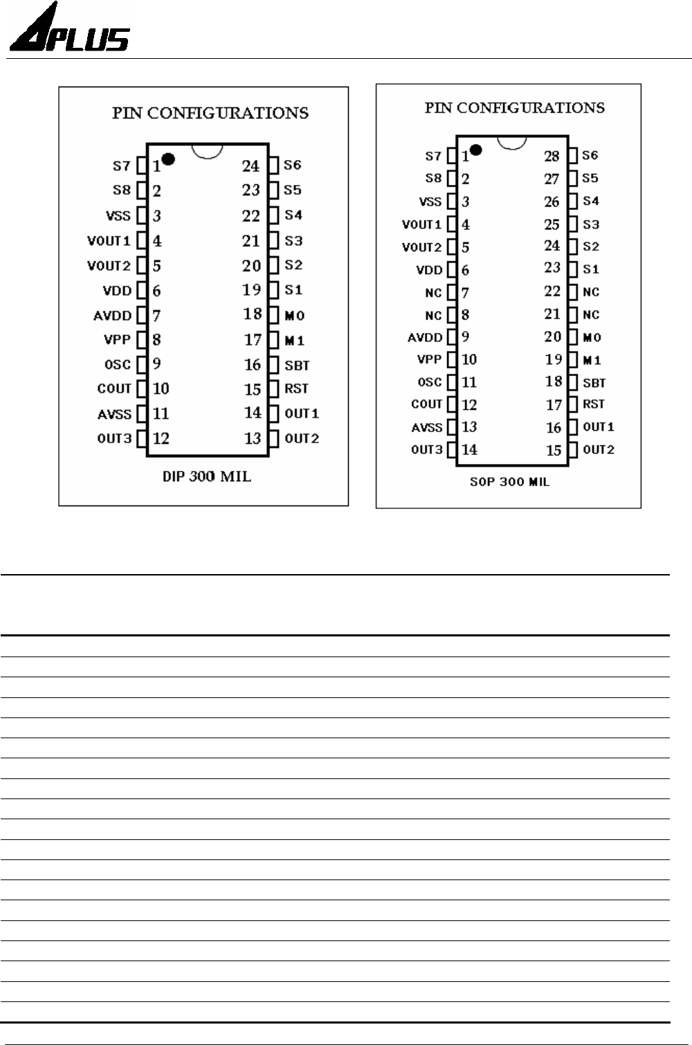 19 ~ 24 S1~S6 IO0~IO6 Trigger input (I/O pin with internal pull-down)