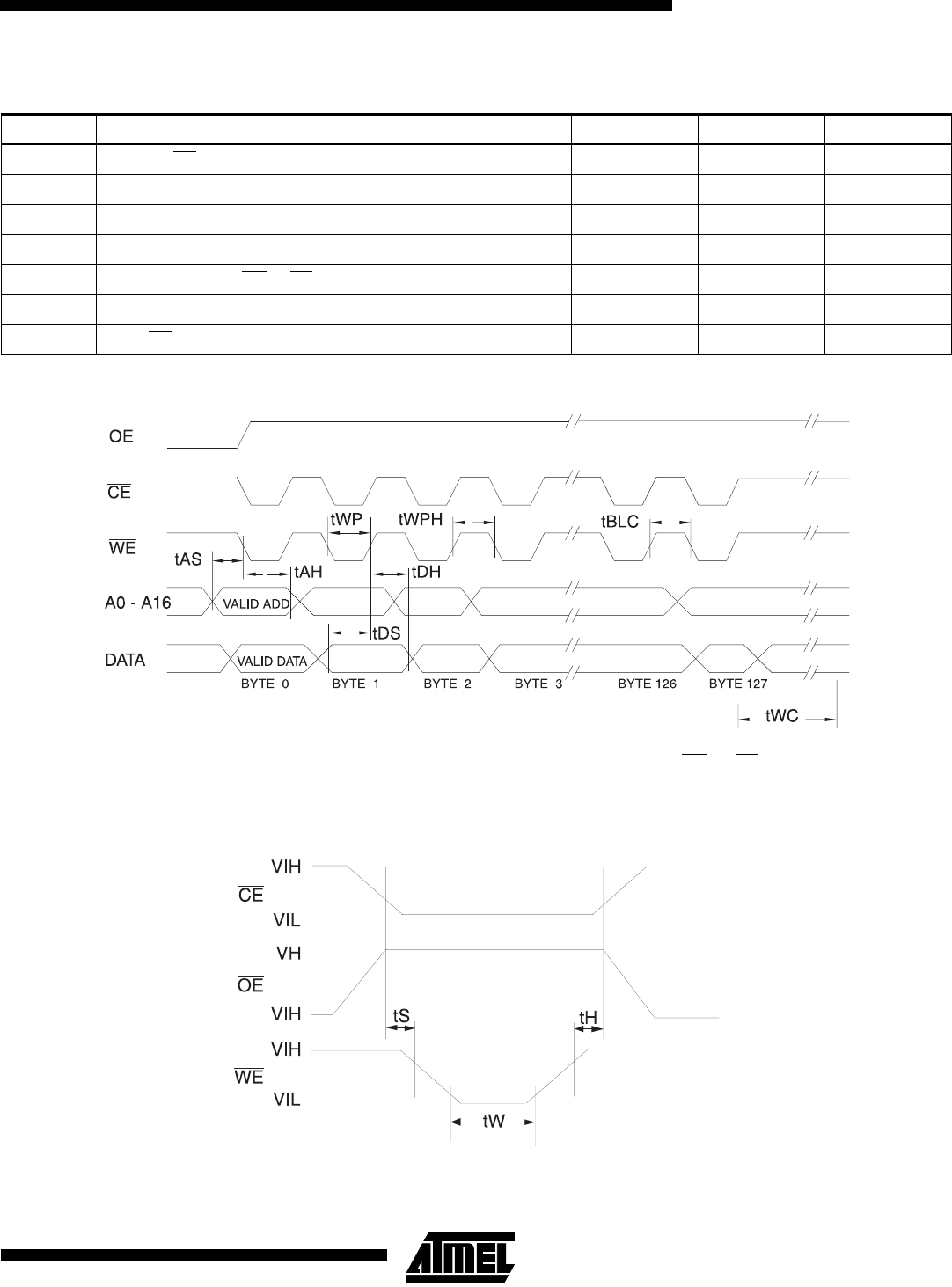 Notes: 1. A7 through A16 must specify the page address during each high to low transition of WE (or CE).