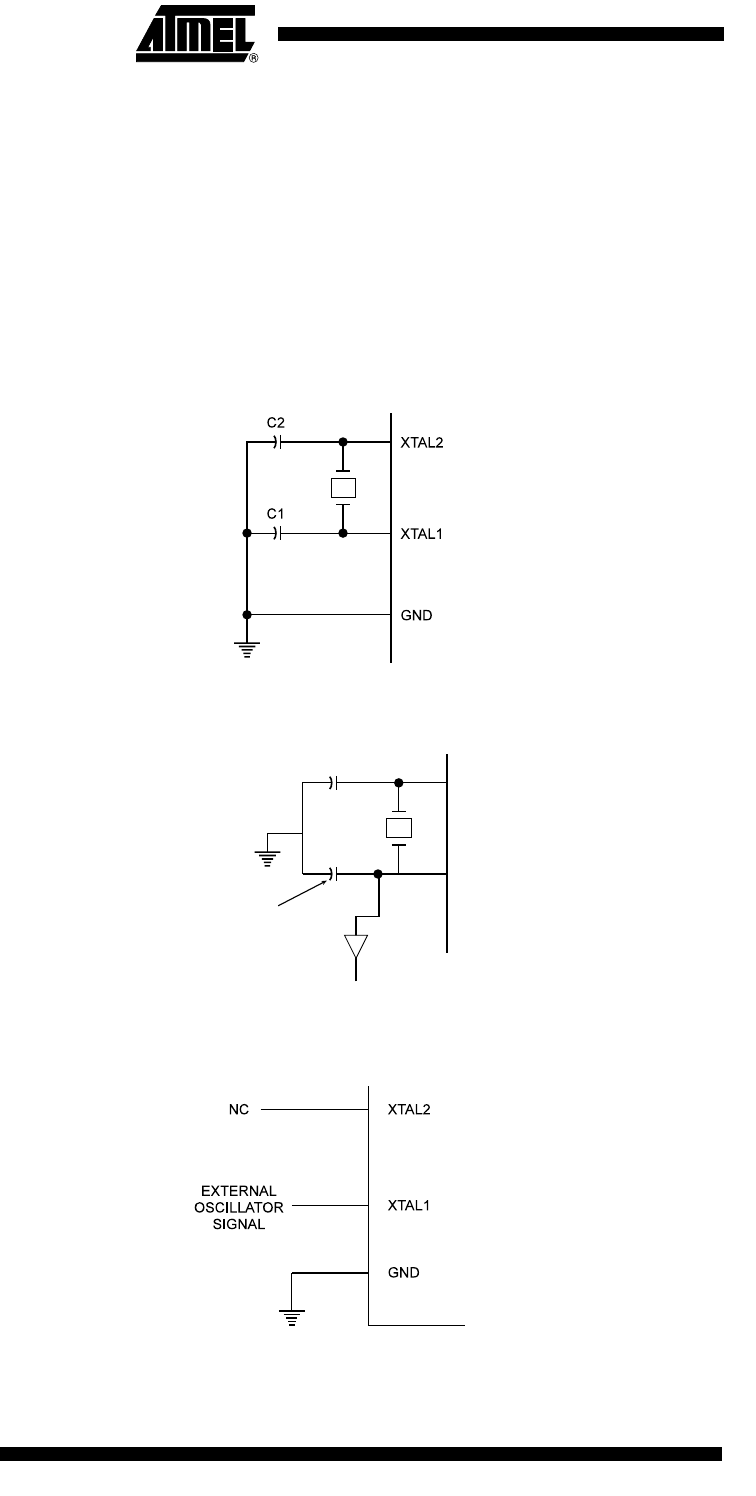 Crystal Oscillator XTAL1 and XTAL2 are input and output, respectively, of an inverting amplifier, which