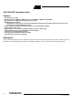 T48C862-R3 Pin Description: RF Part (Continued) Pin Symbol 21 CLK Function Configuration Clock output signal for microcontroller The clock output frequency is set by the crystal to fXTAL/4. VS 100 CLK 100 22 PA_ENABLE Switches on power amplifier, used for ASK modulation PA_ENABLE 50k Uref=1.1V 20 mA 23 ANT2 Emitter of antenna output stage 24 ANT1 Open collector antenna output ANT1 ANT2 Pin Description: Microcontroller Part Pin No.