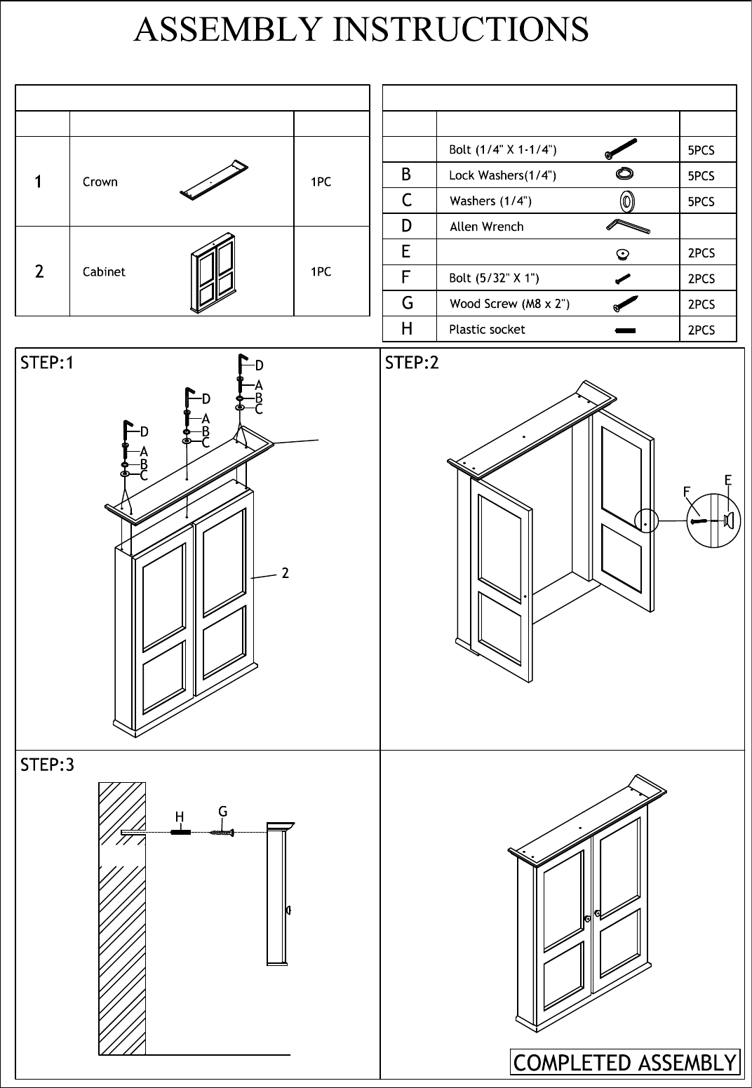 MODEL:DCAB3 ITEM Part List DESCRIPTION QTY Hardware List DESCRIPTION ITEM A QTY 1PC Handle 1 (WALL) FLOOR