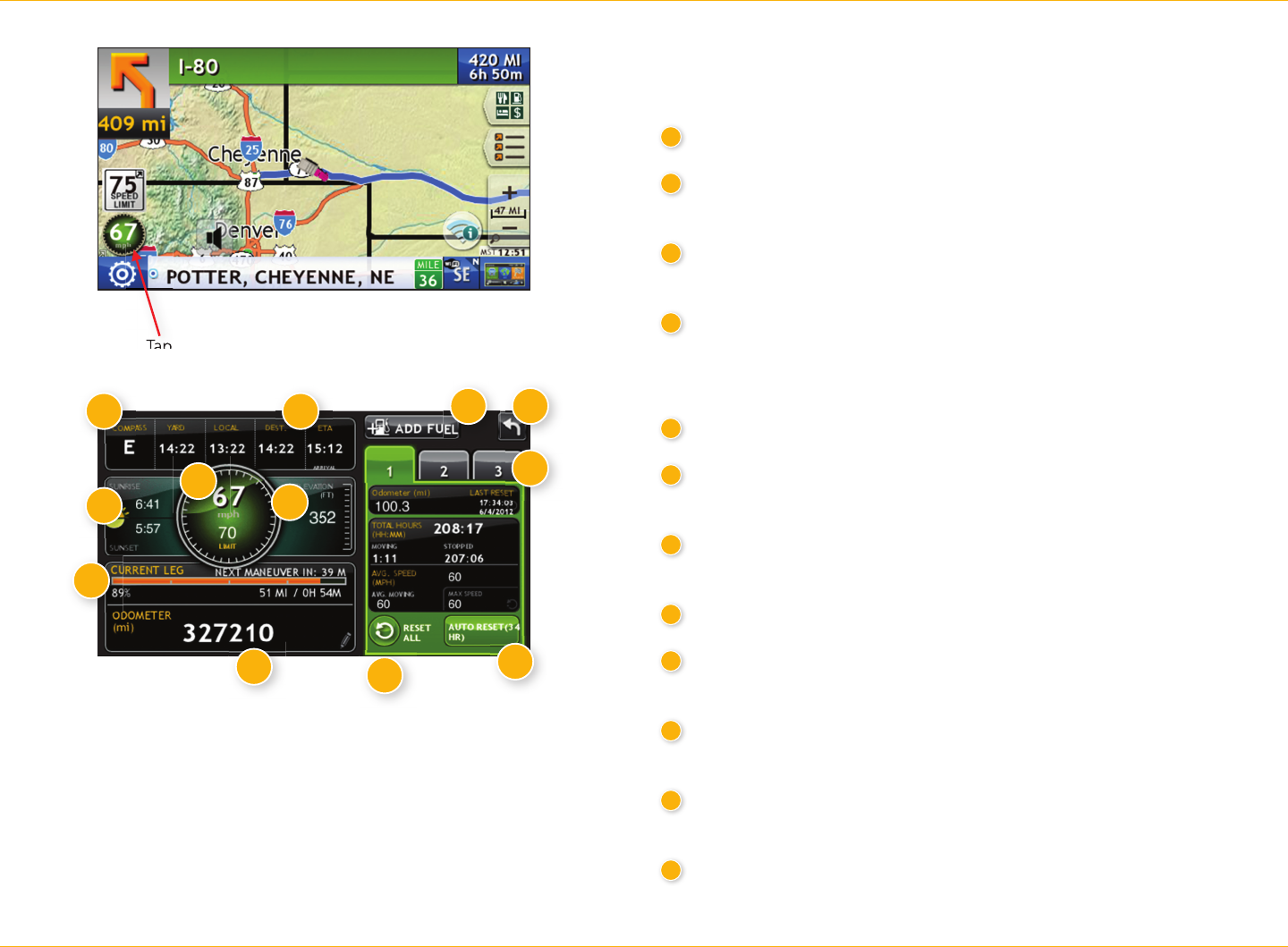 Reset trip information for the selected trip (Tab 1, Tab 2 or Tab 3).