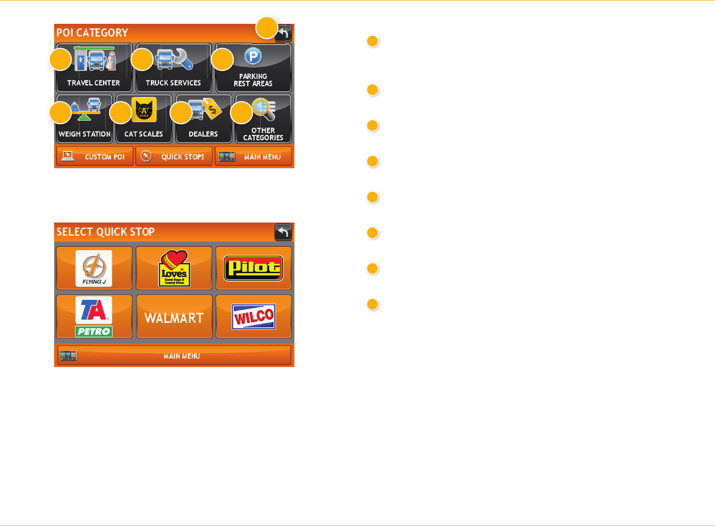 Tap to search for a truck services POI. See page 28 to fi lter by amenities.