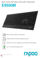 Multi-mode Wireless Ultra-slim Keyboard E9500M Multi-mode wireless connection Instant switch among multiple devices Ultra-slim 4.5 mm design with aluminum alloy base Up to 12 months battery life More information at www.rapoo.