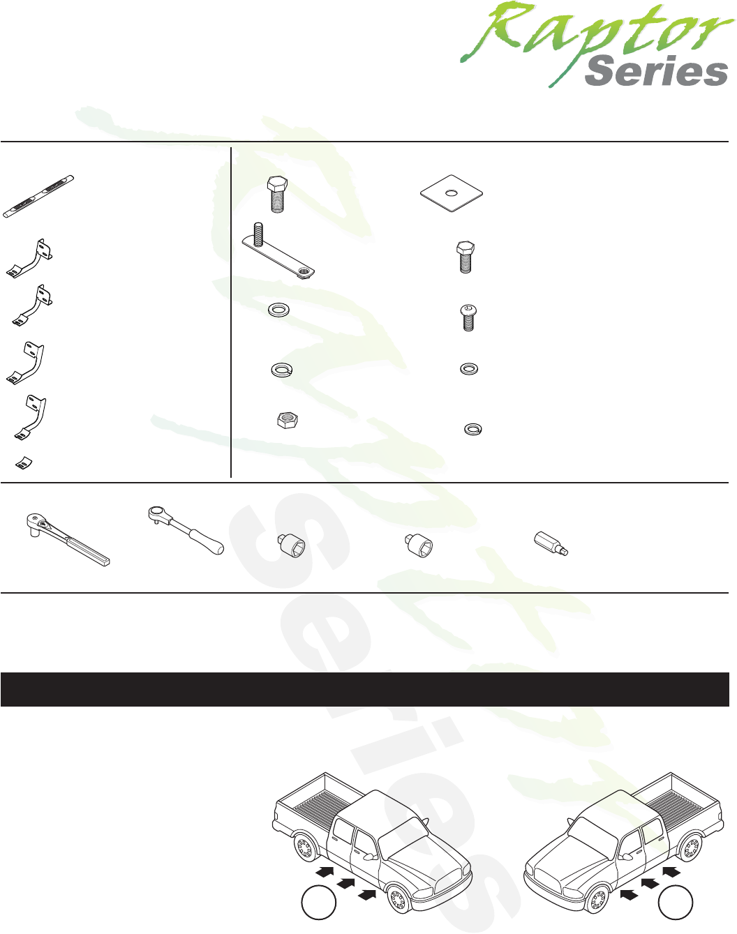 Note: When installing the brackets and bars, all hardware must be left loose until all the items are attached.