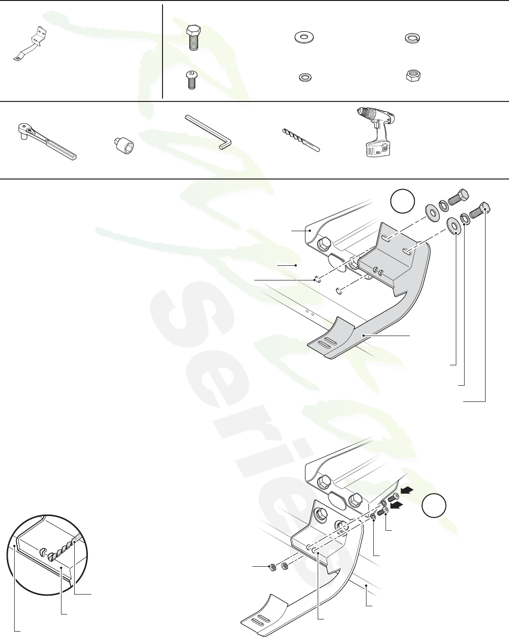 two (2) holes into Pinchweld using a 1/4” drill bit