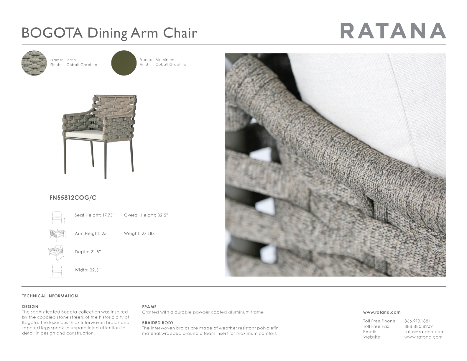 Bogota Patio Dining Chair with Cushion