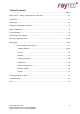 Table of Contents ..................................................................................................................................... Pages Quick Set Up – wiring, changing lenses, hard reset ........................................................... 2-4 Introduction ........................................................................................................................... 6 Quick Start ........................................................................................