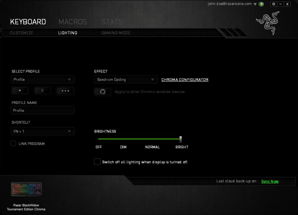 or select pre-loaded lighting effects to be applied to the entire keyboard. You can also