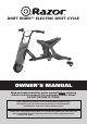 DRIFT RIDER™ ELECTRIC DRIFT CYCLE OWNER’S MANUAL Read and understand this entire manual before allowing child to use this product! For assistance contact Razor. DO NOT RETURN TO STORE. NOTE: Manual illustrations are for demonstration purposes only. Illustrations may not reflect exact appearance of actual product. Specifications subject to change without notice. Please have your product along with the 19 character product I.D.