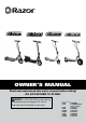 Troubleshooting Guide Problem Possible Cause Solution Sometimes the scooter doesn’t run, but other times it does Brakes are not adjusted properly Refer to adjusting the brakes instructions on page 4. Loose wires or connectors Check all wires around the motors and all connectors to make sure they are tight. Charger gets warm during use Motor or electrical switch damage Contact your local Razor authorized service center for diagnosis and repair.
