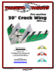 30” Crack Wing By RC Factory Specifications Wing span – 30” / Length – 14” AUW 90 - 100g 2000-2800kV outrunner motor (11g – 18g) 6 - 12 amp ESC / 2s 180 – 250mAh battery 4 ch radio with Elevon Mixing 2x 4g to7g servos / 6x3 to 7x3.5 prop USA Distributor Twisted Hobbys www.twistedhobbys.com Rev: 2013.02.02.