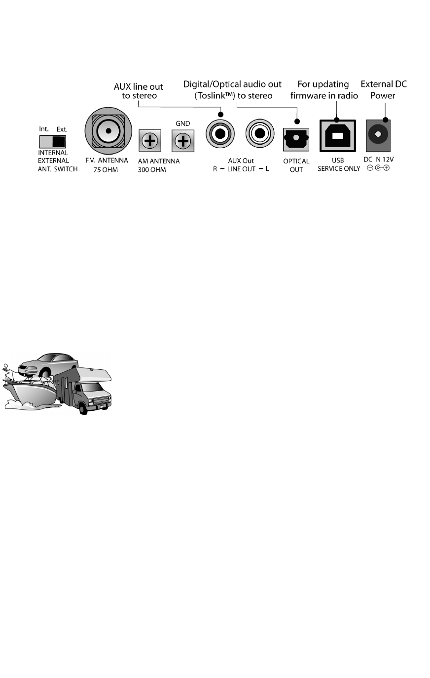To use an external AM and FM antenna, set the switch to ‘Ext.’. The switch