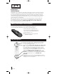 RCU800B_IB_REVB.qx4 2/11/04 13:05 Page 21 Battery Installation and Information Your universal remote requires two AAA Alkaline batteries (batteries may or may not be included, depending on model). To install the batteries: 1. Remove the battery compartment cover. 2. Insert the batteries, matching the batteries to the (+) and (–) marks inside the battery compartment. 3. Press and push the battery cover back into place. Note: Reprogramming may be required after batteries are replaced.