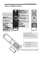 Getting Started Getting started Front view DVD Insert disc with shiny side facing the front of TV. (IR) Infrared Receiver: Receives IR signals from the remote control. (Power on/Standby) LED Indicator: Press to turn on and off Indicator on(Red) Standby mode Indicator on(Green) Power on mode The functions of the buttons on the TV are as follows: SOURCE External signal input selection and confirm the item selected. MENU: 1.Press Menu. 2.Press SOURCE to enter. 3.Use CH+/- to shift UP/DOWN. 4.