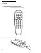 Setting Up the TV/VCR Startup 1. Unpack the TV/VCR and remote control Contact your dealer if your remote control is missing. OFF TV VCR REW PLAY FF REC STOP PAUSE SLEEP DISPLAY VOL VOL CHAN CHAN PREV MUTE CLEAR MENU 1 2 3 4 5 6 8 9 7 SKIP H SE ARC - 2. Insert batteries in remote 2 RESET SPEED 0 TRACK + F.