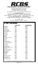 PRECISIONEERED ® RELOADING EQUIPMENT We think that we make the very best reloading equipment in the world. If you agree, please tell your friends. If you disagree, tell us - we want to do something about it! Customer Service 1-800-533-5000 (US or Canada) or 530-533-5191 Hours: Monday - Thursday, 6:30am - 3:00pm (hours may vary) e-mail: rcbs.tech@atk.com • www.rcbs.com RCBS • 605 Oro Dam Blvd.