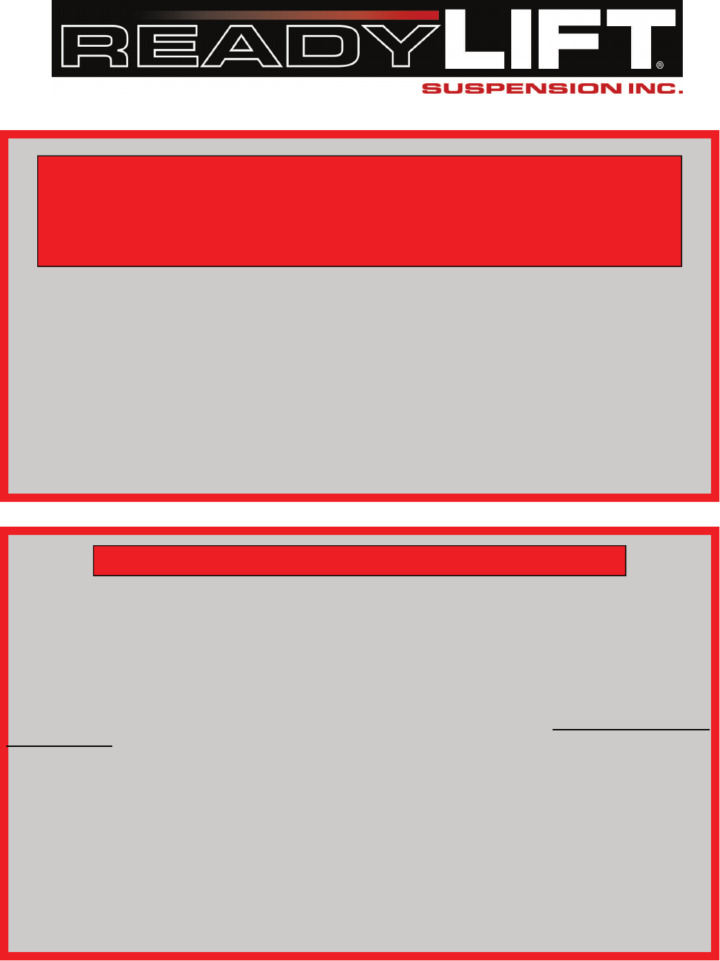 voids the warranty of the ReadyLIFT product. ReadyLIFT is NOT responsible for any subsequent damages to any