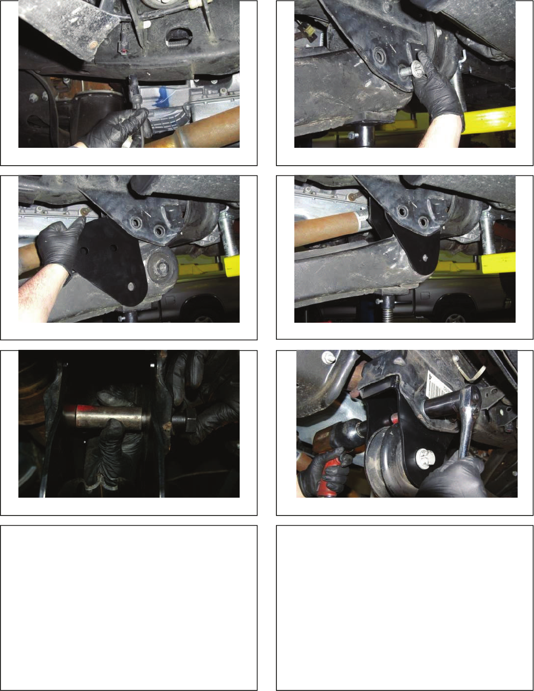 Insert crush sleeves and new hardware into drop bracket. Tighten hardware and leave OE bolt loose until on ground.