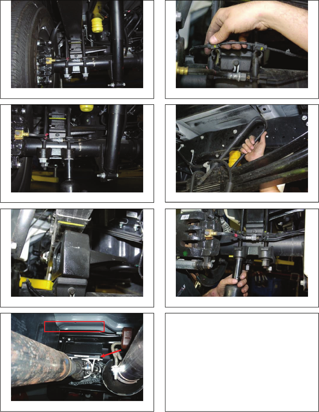 Raise Vehicle and support by frame. Support axle with jack. Vehicles with ABS/TC remove clips from U-bolts.