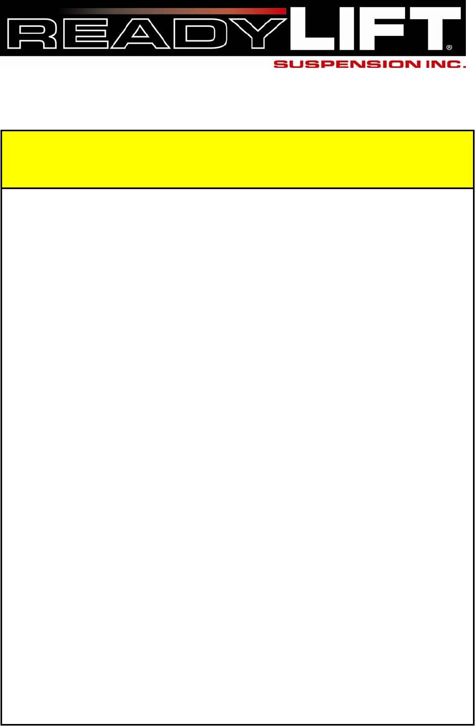SAFETY WARNING:ReadyLift Suspension Inc. recommends this system be installed by a professional techni-