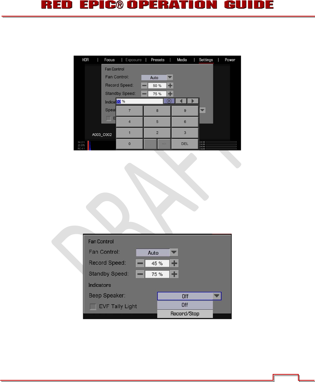 Sets a fixed fan speed to be used during Record. Range 35 – 100%. Default is 50%.
