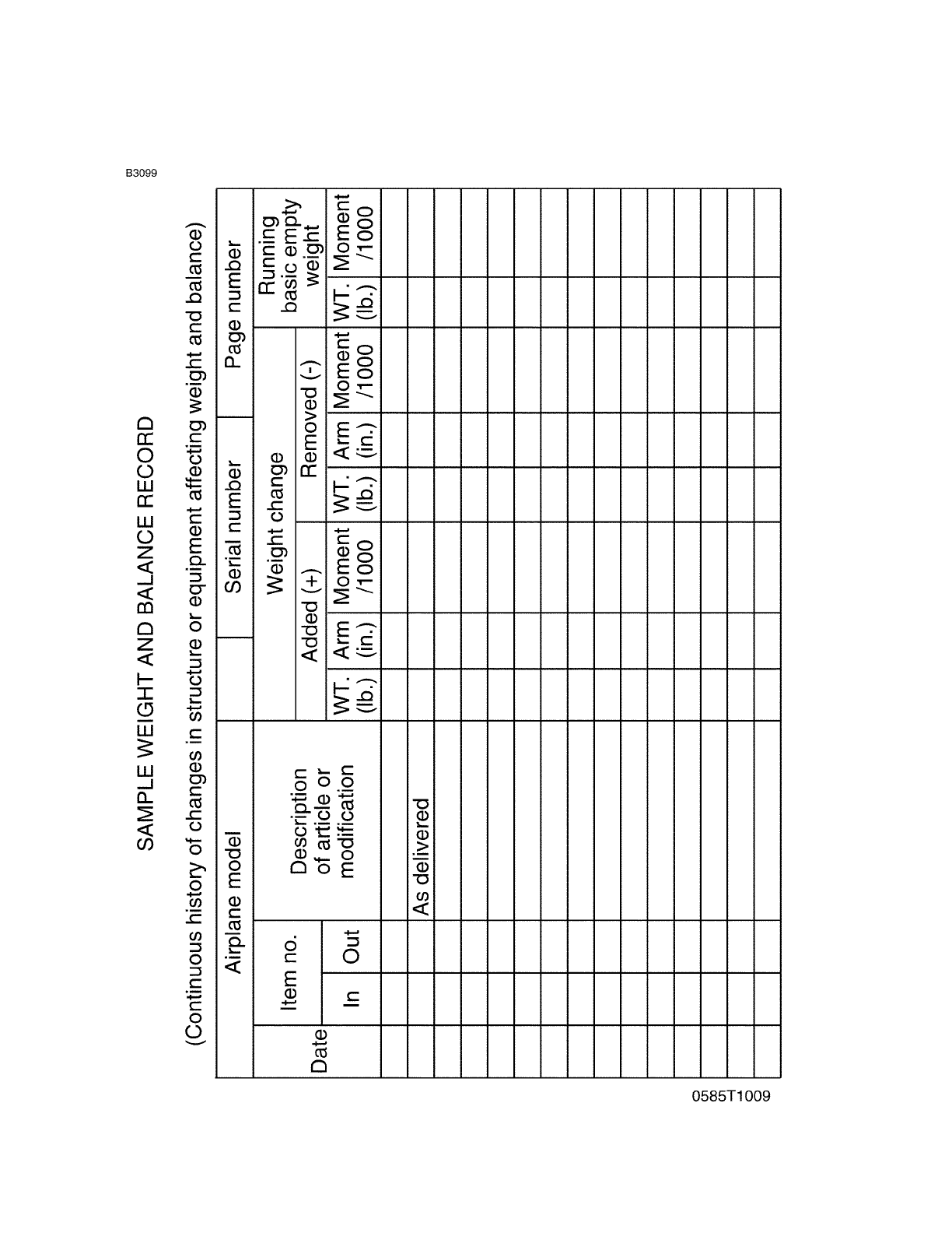 SAMPLE WEIGHT AND BALANCE RECORD