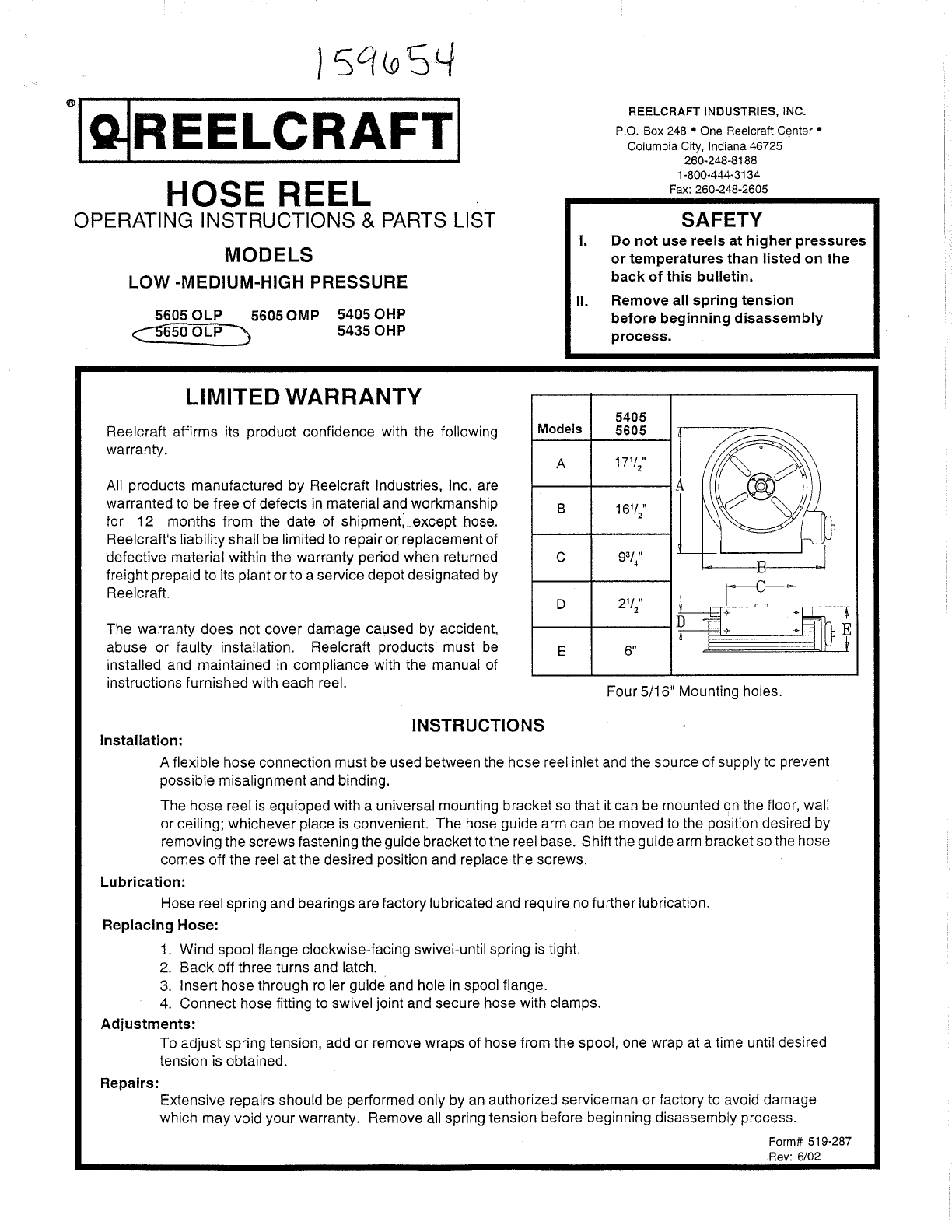 Air/Water Hose Reel — With 3/8in. x 50ft. PVC Hose, Max. 300 PSI, Model # 5650 OLP