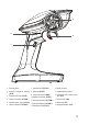 d) Wyłączanie zasilania Ważne: Najpierw wyłącz odbiornik, a następnie nadajnik. 1. Wyłącz zasilanie odbiornika. 2. Wyłącz zasilanie nadajnika, naciskając przycisk POWER OFF. 11. Panel obsługi a) Kanały nadajnika Kanał Opis CH1 Serwomechanizm sterujący CH2 Serwomechanizm dławiący Przełącznik serwomechanizmu AUX (trzy pozycje). Trzy pozycje mogą mieć np. następujący wpływ na serwomechanizmy: CH3 Przycisk serwomechanizmu AUX (minimum /maksimum).