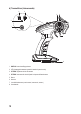 b) Trasmettitore (telecomando) 3 4 5 6 2 1 7 8 1 SWITCH: Accensione/Spegnimento 2 LED (lampeggia lentamente quando la batteria è quasi scarica) 3 ST.TRIM: regolatore del trim di sterzata 4 HT.TRIM: Interruttore di velocità (limita la risposta dell’acceleratore 5 Sterzo 6 Antenna 7 Leva dell'acceleratore (marcia avanti, retromarcia, arresto) 8 Vano batterie.