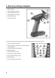 10. Uruchomienie nadajnika W dalszej części niniejszej instrukcji cyfry podawane w tekście odnoszą się zawsze na rysunku obok lub do rysunków umieszczonych w poszczególnych rozdziałach. Odniesienia do innych rysunków są podawane zawsze z informacją z odpowiednim numerem rysunku. a) Wkładanie baterii Do zasilania nadajnika potrzebne są 4 baterie alkaliczne (np. nr zam. Conrad 652507, 4-pak, 1x ) rozmiaru AA/Mignon.